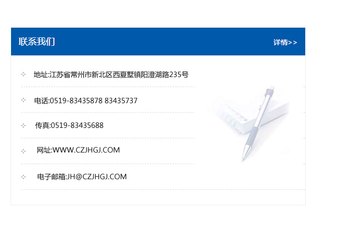 地址:常州市新北區友邦商務大廈1幢16、17層  電話:0519-85101652  傳真:0519-85112595  郵編:213022  網址:www.cz-jiayue_cn.cqklbl.com  郵箱:xiajifengaa@163.com